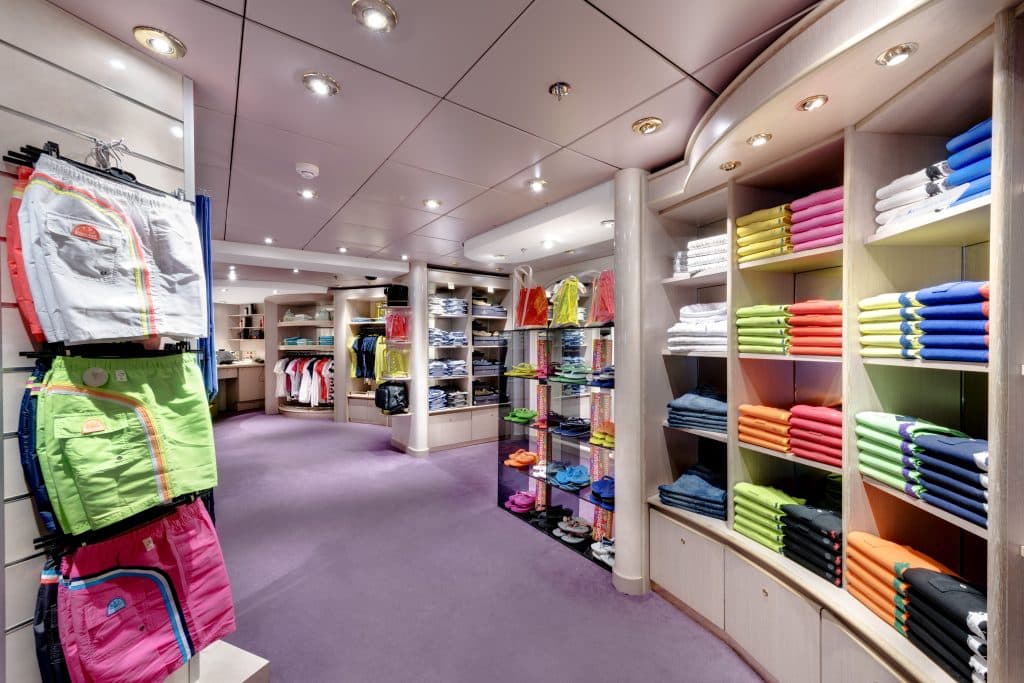 Auf Deck 6 wird ein neues Einkaufszentrum mit dem Namen WALK THROUGH SHOPS eröffnet.