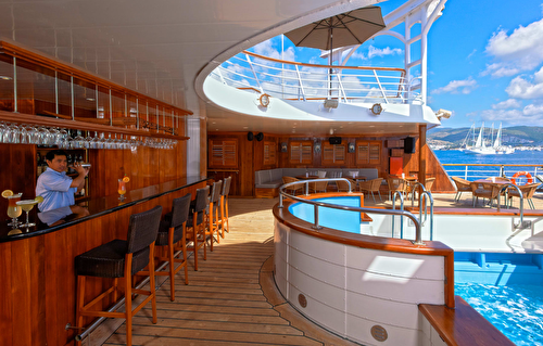 Die Wind Spirit ist eine schlanke Segelyacht mit vier Masten, auf der zu 148 Gäste untergebracht werden können. Die Wind Spirit fühlt sich mit ihren vier Decks und einem Gewicht von 5,350 Tonnen an wie Ihre eigene, private Yacht. Die Wind Spirit bietet Ihnen weite, offene Decks aus Teakholz – was für kleine Schiffe eher ungewöhnlich ist. Mit über 930 m2 an Platz auf den Decks werden unsere Gäste überall versteckte Eckchen finden, an denen sich private Momente erleben lassen. Somit haben Sie ständig das Gefühl, auf Ihrer eigenen, privaten Veranda zu sein. Alle Kabinen können sich mit einem Blick auf das Meer, Betten in Queensize Größe, einem Flachbildfernseher mit DVD-Spieler und Bose SoundDock Lautsprechern für Apple iPods rühmen. In der Owner’s Suite wartet des Weiteren ein Sitzbereich auf Sie. Die Wind Spirit bietet Ihnen zwei erstklassige Speiseoptionen. Das Restaurant hält eine Gourmet Küche, die Ihnen am Abend Gang für Gang serviert wird, bereit und das Veranda Restaurant wird Sie morgens und mittags sowohl mit einem gemütlichen Buffet als auch mit der Option auf Service verwöhnen. Und wenn Sie unter den Sternen speisen möchten, dann machen Sie doch eine Reservierung für ein Candlelight Dinner, bei dem Sie Steaks und Spießchen erwarten. Zu den Annehmlichkeiten an Bord der Wind Spirit sind das WindSpa, ein Kasino und eine Entertainmentlounge, eine Wassersportplattform, eine Bibliothek, ein Pool und ein Whirlpool zu zählen.