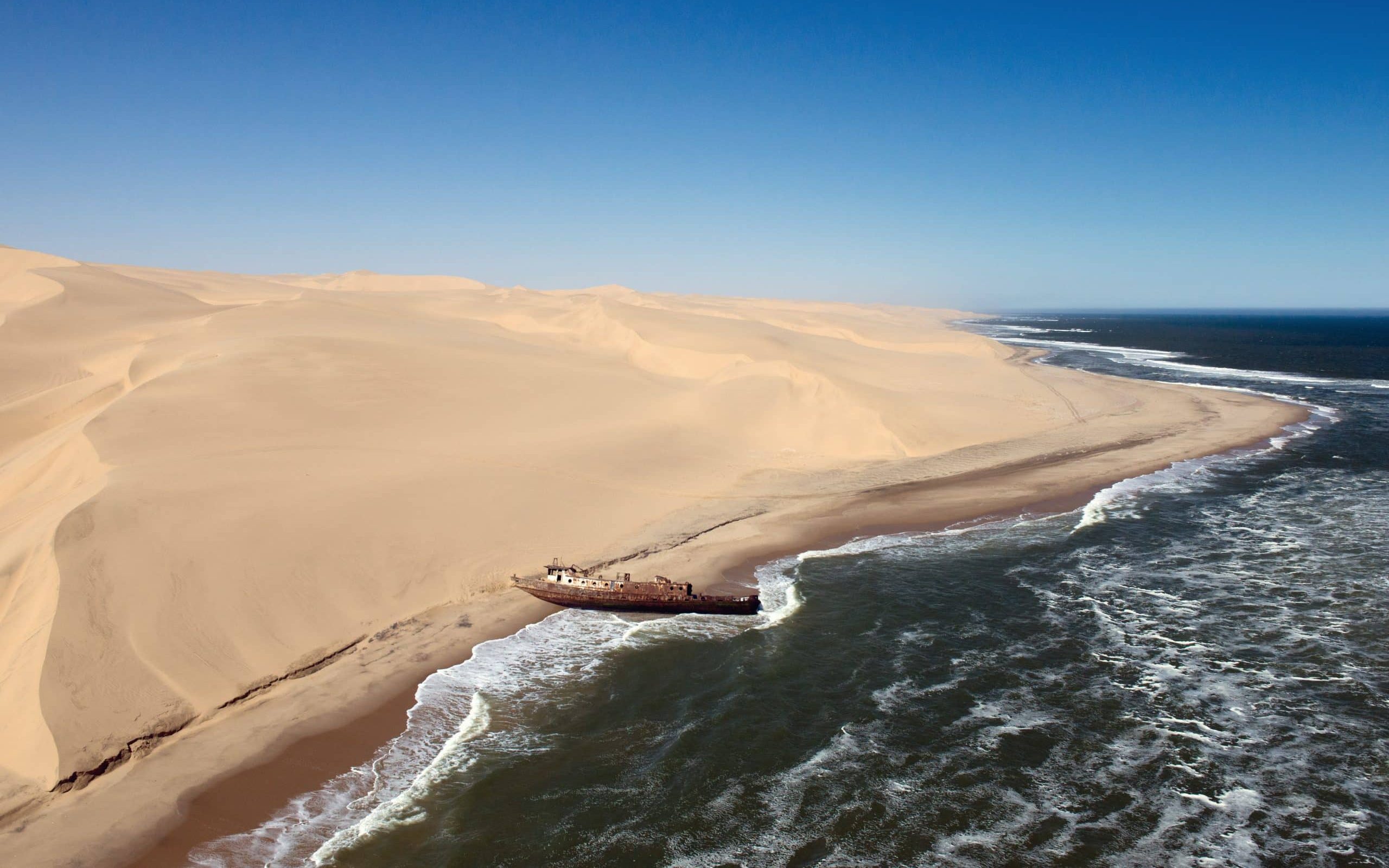 Walvis Bay ist eine Hafenstadt an der Küste Namibias. Geschützt durch die Sandzunge Pelican Point beherbergt ihre Gezeitenlagune eine reiche Vogelwelt, darunter Flamingos, Pelikane und Damara-Seeschwalben. Der Hafen ist belebt mit Fischerbooten und Schiffen. In den Atlantikgewässern rund um den Leuchtturm von Pelican Point leben Delfine, Wale und Kap-Pelzrobben. Östlich der Bucht markieren die Küstendünen, wie etwa die Düne 7, den Beginn der Namib-Wüste.